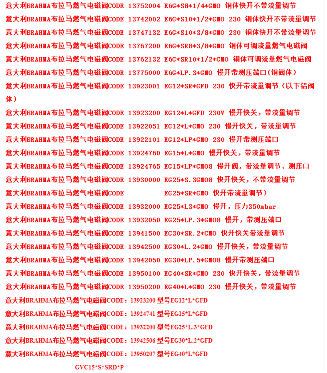 意大利--巴拿马(BRAHMA)燃气电磁阀