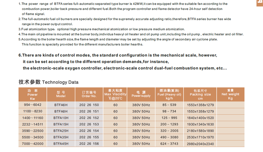 百特--重油燃烧器(分体式)